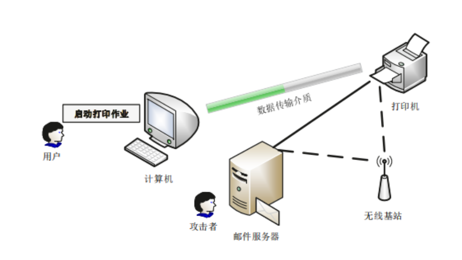 二是无线网络连接被攻击和利用。随着移动办公的普及,无线连接在办公自动化设备中的应用也变得更加广泛,很多设备都支持无线网络连接,有的还能够提供Wi-Fi热点或蓝牙接入点,允许用户终端通过Wi-Fi或蓝牙连接设备并提交作业数据。在这种场景下,攻击者不仅能够伪造Wi-Fi热点或蓝牙接入点,诱使用户接入非法网络,从而窃取用户的打印作业数据,还可能通过对办公自动化设备的无线网络接入口令进行破解,进而控制设备并窃取作业数据。此类攻击都能够造成用户敏感信息的泄露,而且用户通常无法感知到攻击的存在。