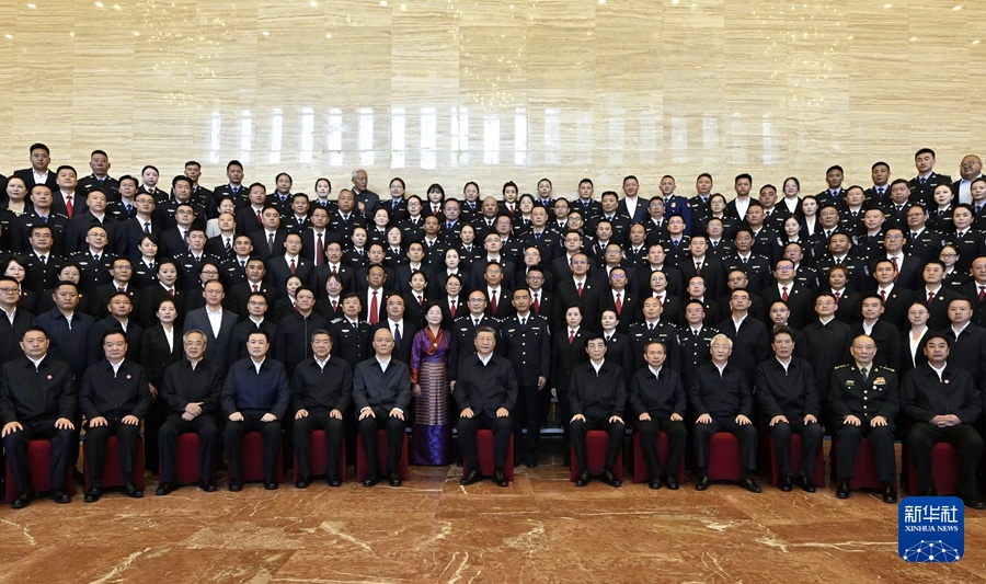 8月20日下午,中共中央总书记、国家主席、中央军委主席习近平在拉萨亲切接见西藏自治区政法干警代表,并同大家合影留念。新华社记者 殷博古 摄