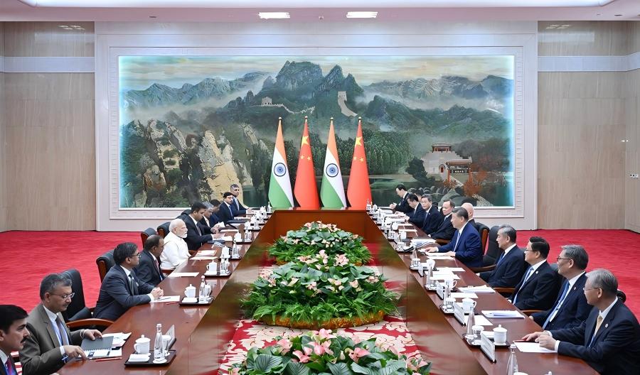 8月31日中午,国家主席习近平在天津迎宾馆会见来华出席2025年上海合作组织峰会的印度总理莫迪。新华社记者 谢环驰 摄