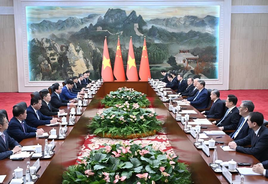 8月31日下午,国家主席习近平在天津迎宾馆会见来华出席2025年上海合作组织峰会的越南总理范明政。新华社记者 殷博古 摄