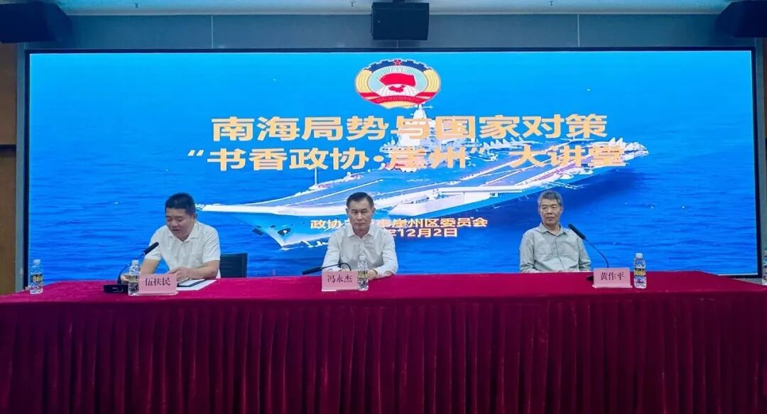 为深入贯彻习近平总书记关于海洋强国建设的重要论述,落实“书香政协”建设要求,12月2日上午,区政协开展“书香政协·崖州”大讲堂活动。活动聚焦海洋战略、南海形势、维权实践及风险应对,引导委员拓宽履职视野、增强国防意识、凝聚经略海洋共识,为服务海洋强国建设、助力崖州高质量发展贡献政协智慧。区政协党组书记、主席冯永杰参加活动。区政协党组成员、副主席伍扶民主持活动。