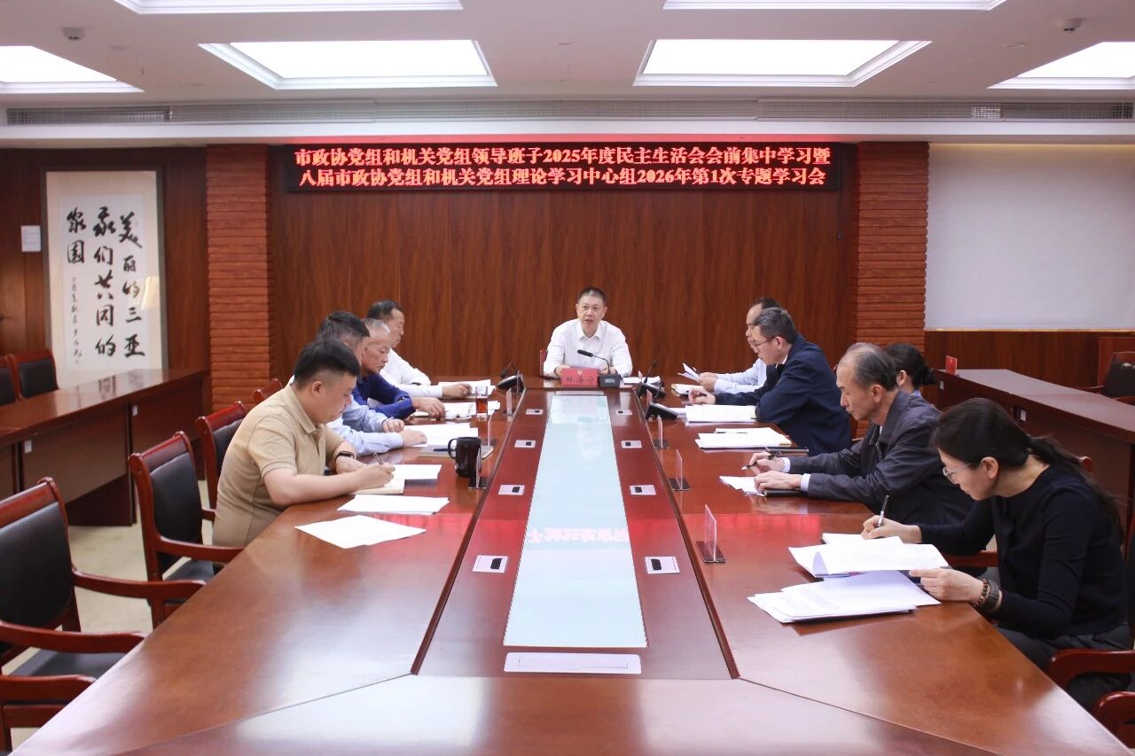 1月8日,市政协党组和机关党组理论学习中心组(扩大)2026年第1次学习会暨民主生活会会前集中学习会召开,深入学习贯彻习近平新时代中国特色社会主义思想和党的二十届四中全会精神,认真学习传达习近平总书记在中共中央政治局民主生活会上的重要讲话精神,开展民主生活会会前集中学习,听取市政协党组和机关党组成员履行全面从严治党“一岗双责”情况汇报,为开好民主生活会打牢思想基础。市政协党组书记、主席林海宁主持会议。