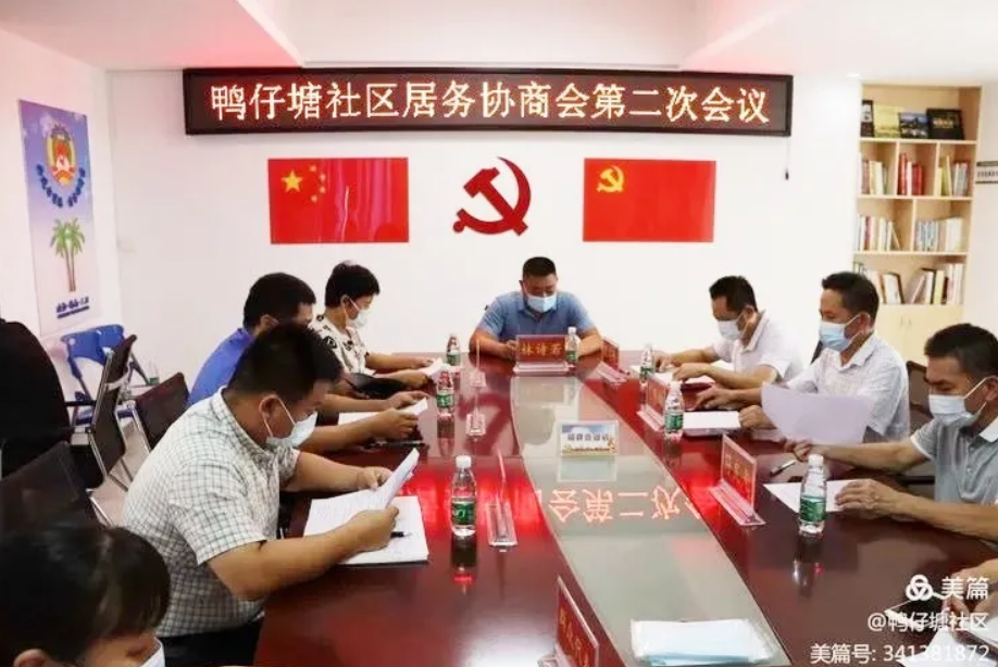 本次会议由鸭仔塘社区居务协商会长林诗若主持,市政协文化文史和学习委员会主任梁定会、天涯区三级调研员龙籍雄应邀到会观摩指导,市政协委员、社区居务协商会副会长陈华恋、鸭仔塘社区居务协商会全体成员以及区发改委、区行政执法局负责人等参加会议。