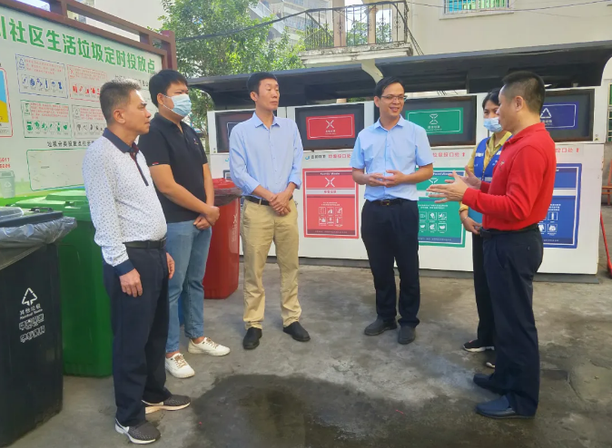 在月川社区唐泽认真查看了垃圾分类设施、垃圾分类宣传栏和各桶站的分类情况,现场听取了相关工作汇报,并与垃圾分类督导员进行交谈,详细了解垃圾分类投放、分类收集等方面工作成效。