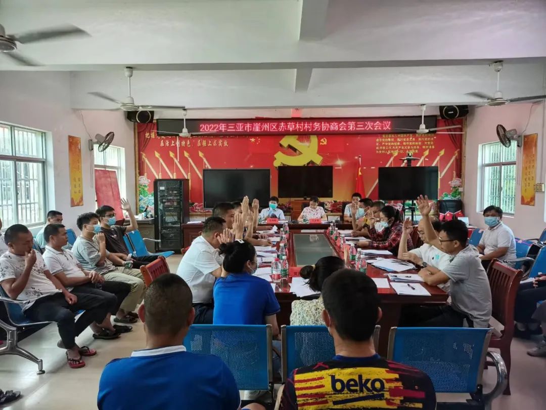 为贯彻落实三亚市关于进一步扩大“完善上下联动机制、推进基层协商民主建设”试点的通知,6月29日上午,崖州区赤草村以“关于赤草村主干道两旁绿化树进行修剪”为议题召开村务协商会第三次会议。会议由赤草村党总支副书记、村务协商会会长刘伟光主持,市政协副主席王文荣、市政协社法委主任王海明观摩指导。