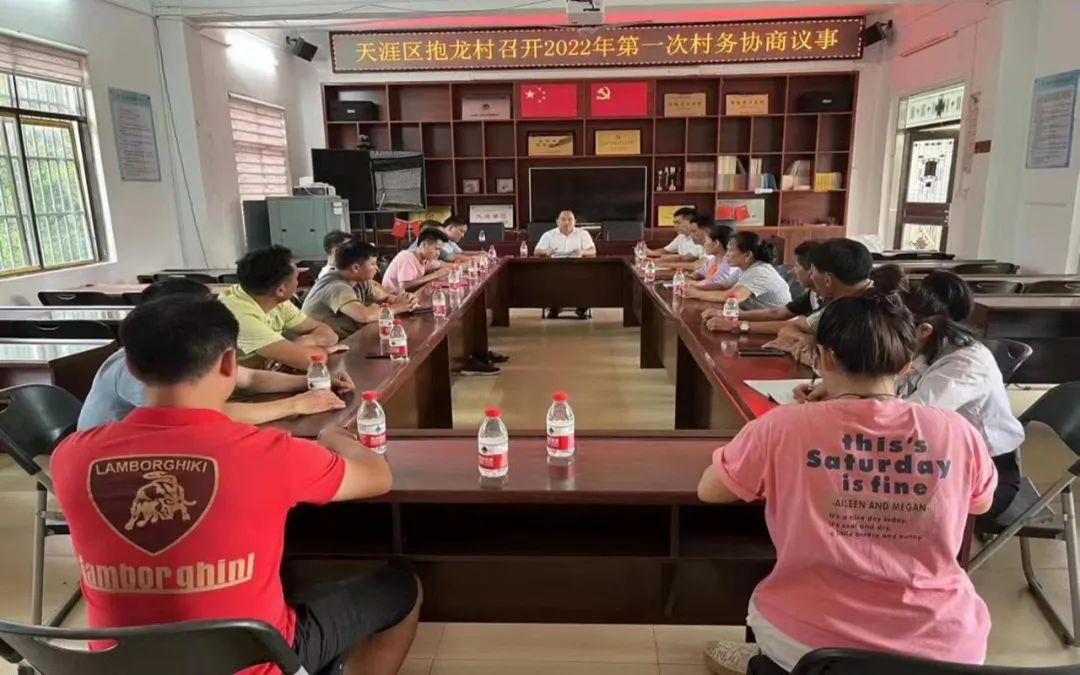 2022年06月01日下午,抱龙村召开2022年第一次村务协商会议,参会人员就“关于抱龙村委会扎套小组文化室前地块硬化的问题”协商议题举手表决并达成协商共识。