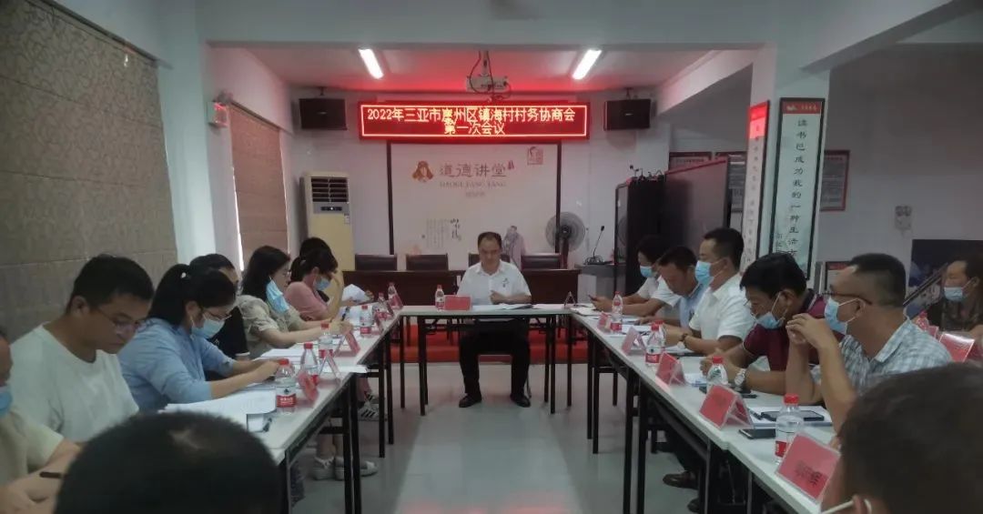 7月8日下午,崖州区镇海村围绕“解决镇海村关于田洋排水工程建设中断问题”的协商主题,召开村务协商2022年第一次会议。梅山大社区党委书记刘利忠到会观摩指导。镇海村党支部书记、主任、村务协商会会长孙芳器主持会议。