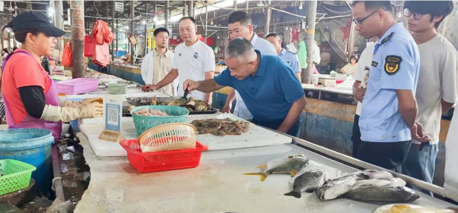 随后,朱传华一行来到南山花园临时农贸市场,详细察看公共基础设施优化提升、“门前三包”制度落实等情况,详细询问商户们在经营中遇到的问题,认真听取他们对“创文巩卫”工作的意见。朱传华指出,强化农贸市场管理,不仅应加强环境卫生整治,还需确保供应食材的安全,相关职能部门要紧紧围绕“干净、整洁、安全、有序”的要求,真抓真管、疏堵结合,加快推进农贸市场环境卫生整治工作。