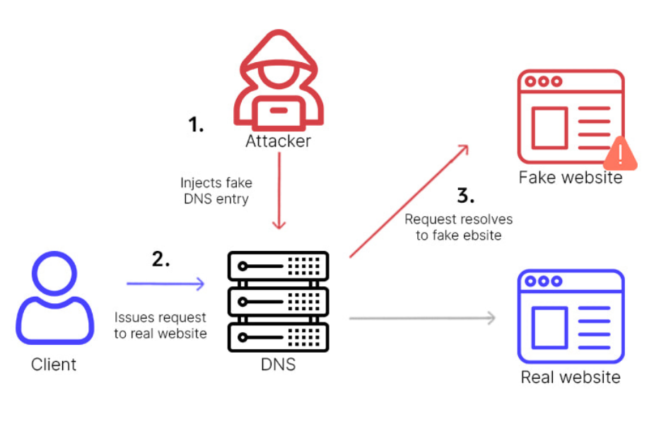 通过域名系统 (DNS) 欺骗,黑客可以更改 DNS 记录从而将流量发送到虚假或“欺骗”网站。一旦进入欺诈网站,受害者可能会输入敏感信息,黑客还可能构建具有贬义或煽动性内容的劣质网站,以此来抹黑竞争对手。
