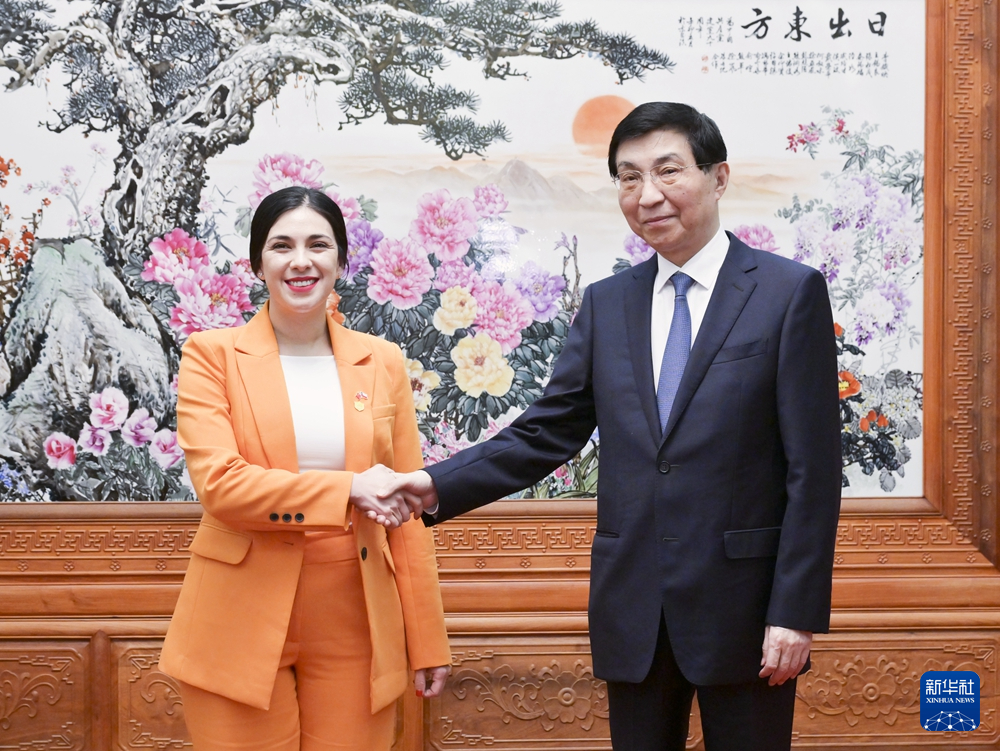 7月19日,全国政协主席王沪宁在北京会见智利众议长卡里奥拉。新华社记者 高洁 摄