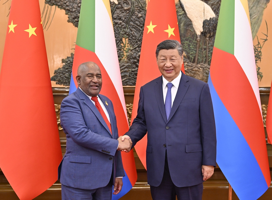 9月2日上午,国家主席习近平在北京人民大会堂会见来华出席中非合作论坛北京峰会的科摩罗总统阿扎利。新华社记者 殷博古 摄