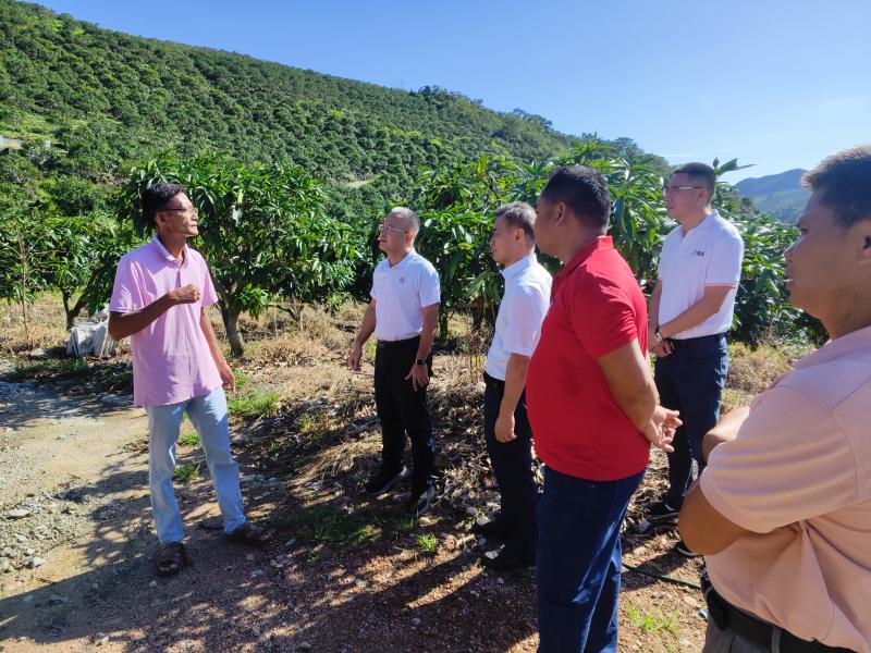 调研组一行先后来到位于崖州区三公里村的两处芒果园地,实地察看种植情况,听取了农户在芒果种植、销售等环节面临的困难。并对当前芒果种植受虫害影响较大,水肥一体化无法做到全面覆盖,生产成本增高,果实品质与外省存在差距,销售价格低迷等问题及存在原因进行了深入了解。