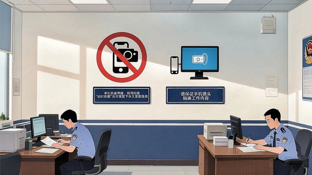 手机镜头与工作信息需保持“物理隔离”,杜绝任何拍摄、扫描行为。