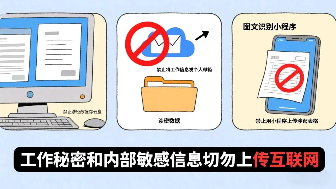 任何互联网平台都不安全,涉密敏感信息严禁上传至云端、邮箱、网盘等。